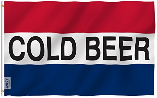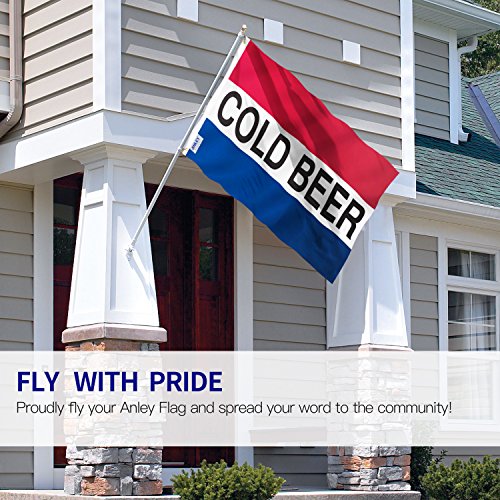 Orignal From: ANLEY [Fly Breeze] 3x5 ft cold beer sign - Vivid color and UV fade resistance - Canvas heading and double seam - Advertising beer logo polyester with brass washer 3 x 5 ft