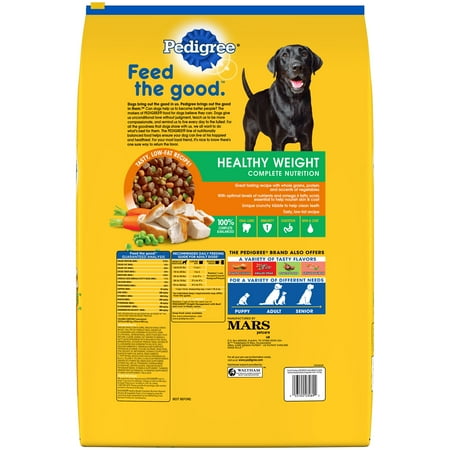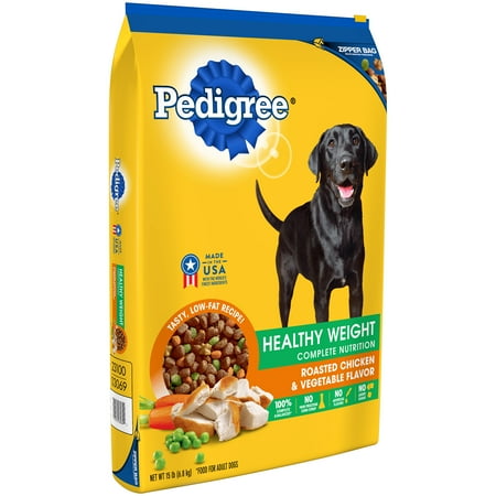 contains one (28) pounds. PEDIGREE bag adult healthy weight grilled chicken and vegetable dry dog food This low-fat dog food is a healthy recipe for high-quality protein to help keep your dog fit and active PEDIGREE foods provide delicious food for dogs Provides roasted chicken flavors of antioxidants, vitamins and minerals to help dogs maintain a healthy weight This adult dog food features a mixture of whole grains and special fibers to support healthy digestion and help your dog feel full [[] 19659005]