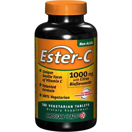 Ester-C 1000 mg with Citrus Bioflavonoids American Health Products 180 VegTab Ester C 1000 mg with Citrus Bioflavonoids 180 VegTab Products Ester-C is a breakthrough patented Vitamin C formula with natural metabolite support. Metabolites help increase the absorption of vitamin C by white blood cells and are an important part of your immune system. Ester-C's unique chemical-free manufacturing process and pH make it non-acidic and mild to the stomach. In a daily dose of 1 000 mg, Ester-C provides 24-hour immune support... so it only needs to be used once a day. Adding citrus bioflavonoids can help your body to better absorb and utilize vitamin C. 24 hour immunization supports mild stomach 100 vegetarian diets once daily patent vitamin C formula is recommended as a dietary supplement for adults taking one (1) vegetarian daily Tablets, meals - or follow the instructions of your health care professional. Supplementary Facts Service Size 1 VegTab Service Each Container 180 Each Service Amount