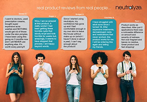 Neutralyze® anti-acne solution enhances the natural healing power of the skin and makes acne - and the accompanying inflammation and redness - completely incompetent. We have discovered the secrets of treating moderate to severe acne: Advanced, Science inspired, medical, Restores the skin to a clear, calm, even, luminous healthy neutral state - ].