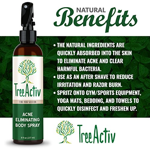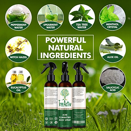 Orignal From: TreeActiv Acne Removal Body Spray | Natural Body, Back, Butt, Chest and Shoulder Acne Treatment | Salicylic Acid | Tea Tree | Aloe Vera | Witch Hazel | Menthol | Peppermint | Men, Women, Teens | 8 fl oz
