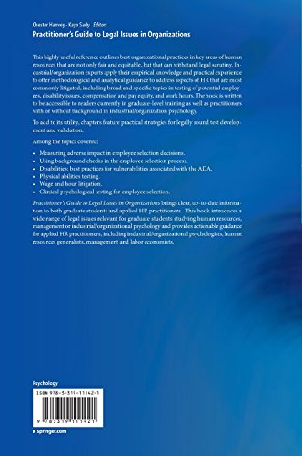 Organizing legal issues practitioner guide Bring clear and up-to-date information on researcher resources, management, to law Graduates of industry/organizational psychology interested in issues and industrial/organizational psychologists, human resources practitioners, management, and labor economists, applied human resources practitioners, [19659002]